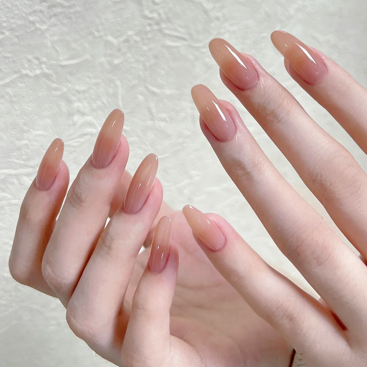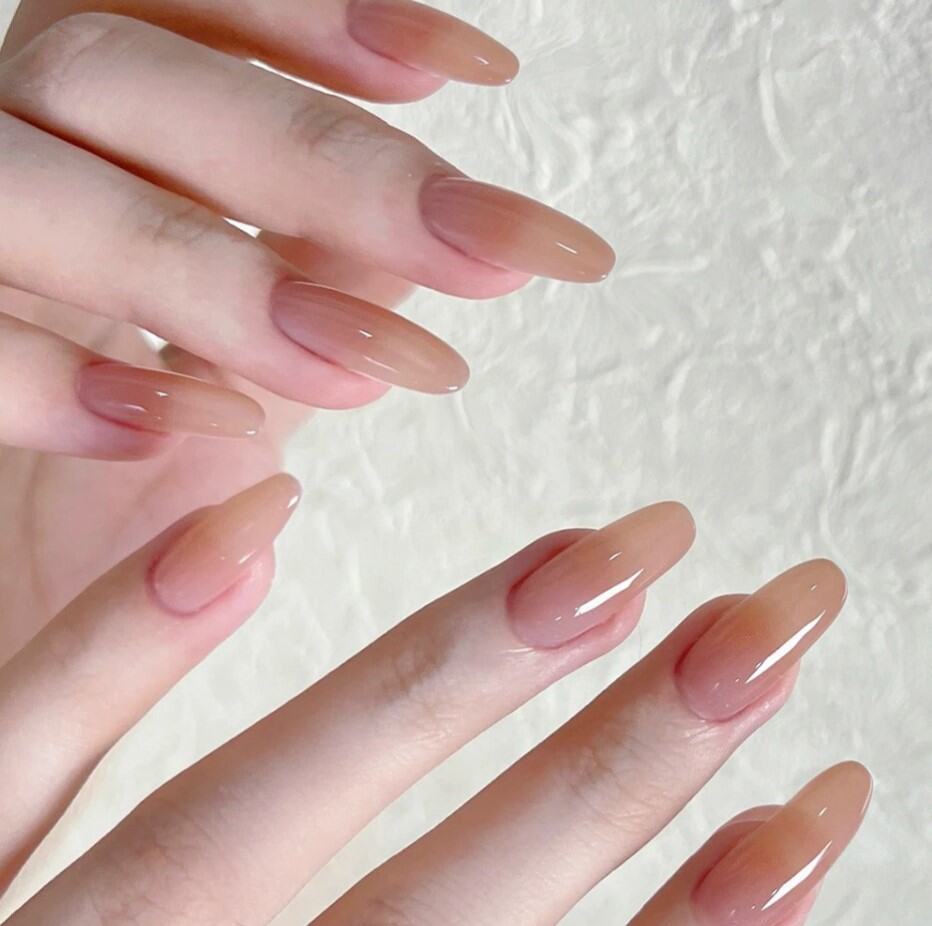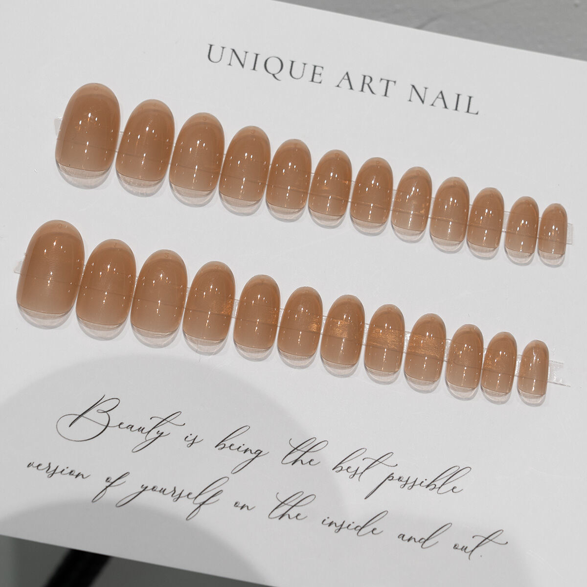 17POOL💙 096 น้ำตาล เล็บมือยาว เร็จรูป กันน้ำ กล่อง 24 ชิ้น