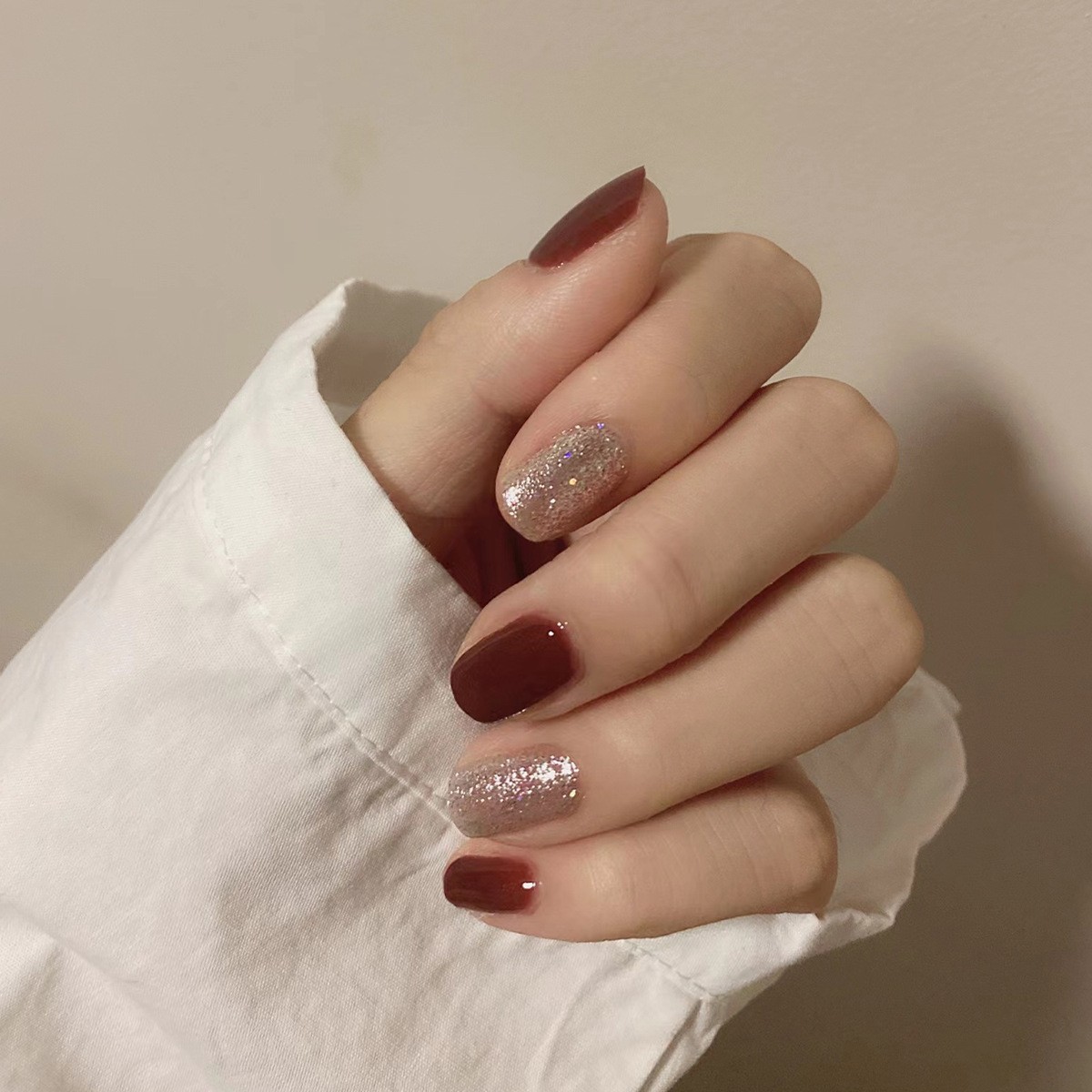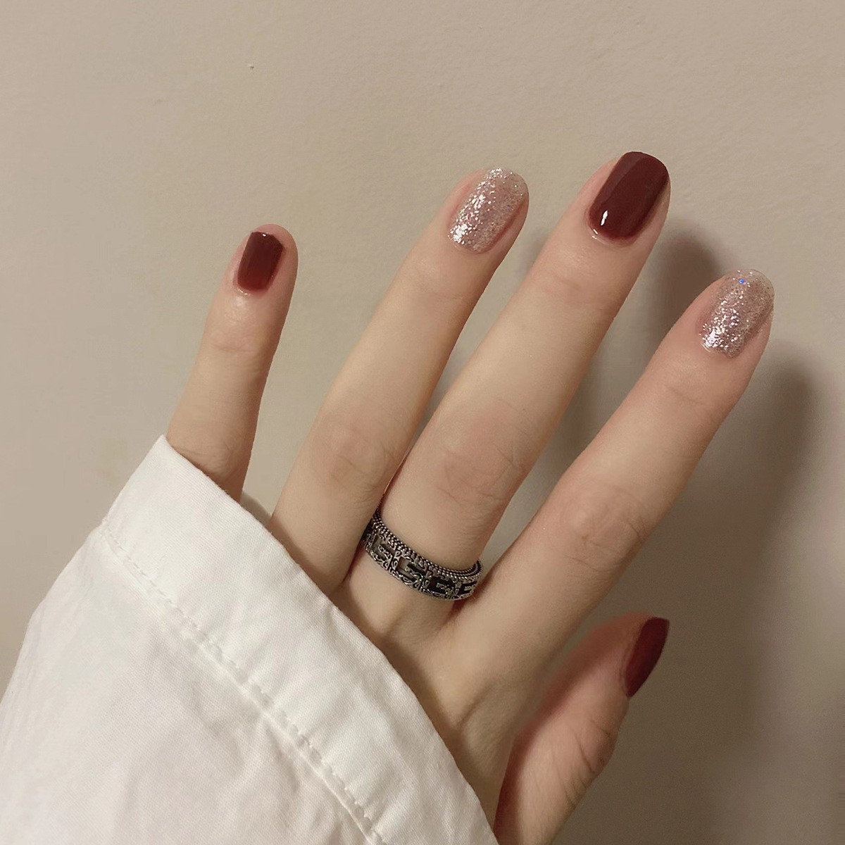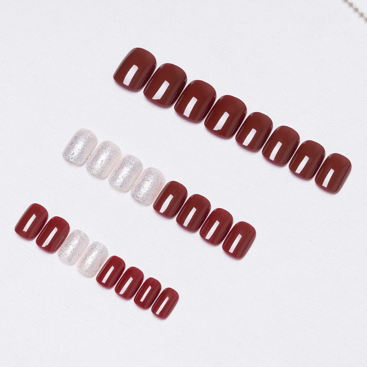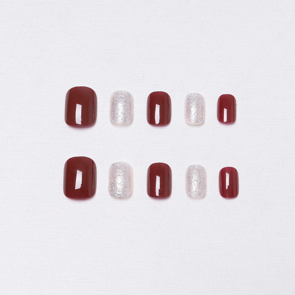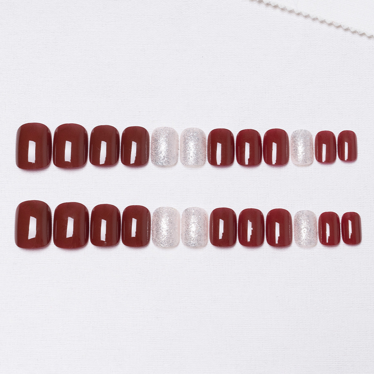 17POOL💙 P130 แดง ประกายเงิน เล็บปลอม เล็บสั้น เร็จรูป กันน้ำ กล่อง 24 ชิ้น