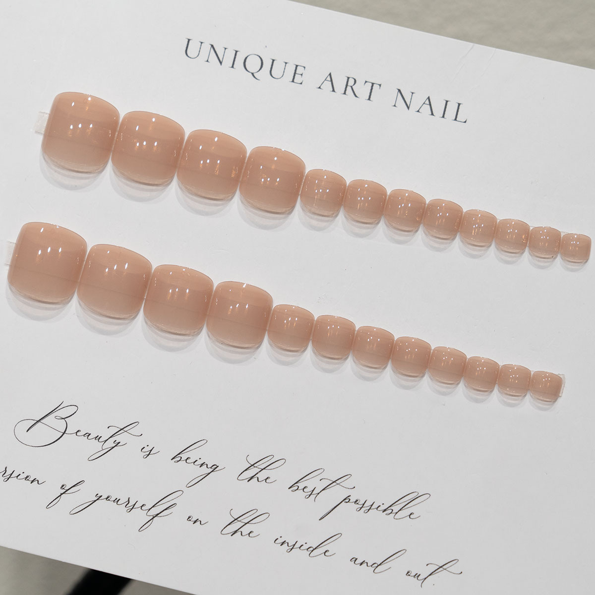 17POOL💙 PF39 น้ำตาล ส้มอ่อน ธรรมชาติ สีเรียบ เล็บเท้า เล็บปลอม สำเร็จรูป กันน้ำ กล่อง 24 ชิ้น