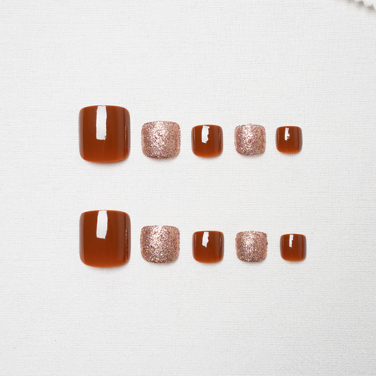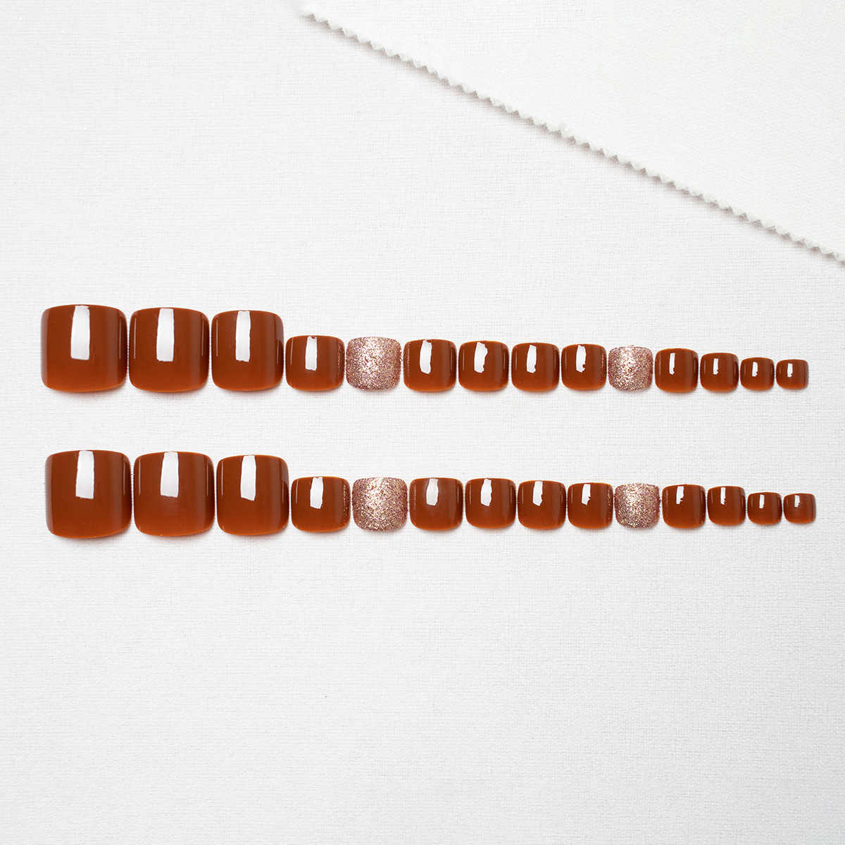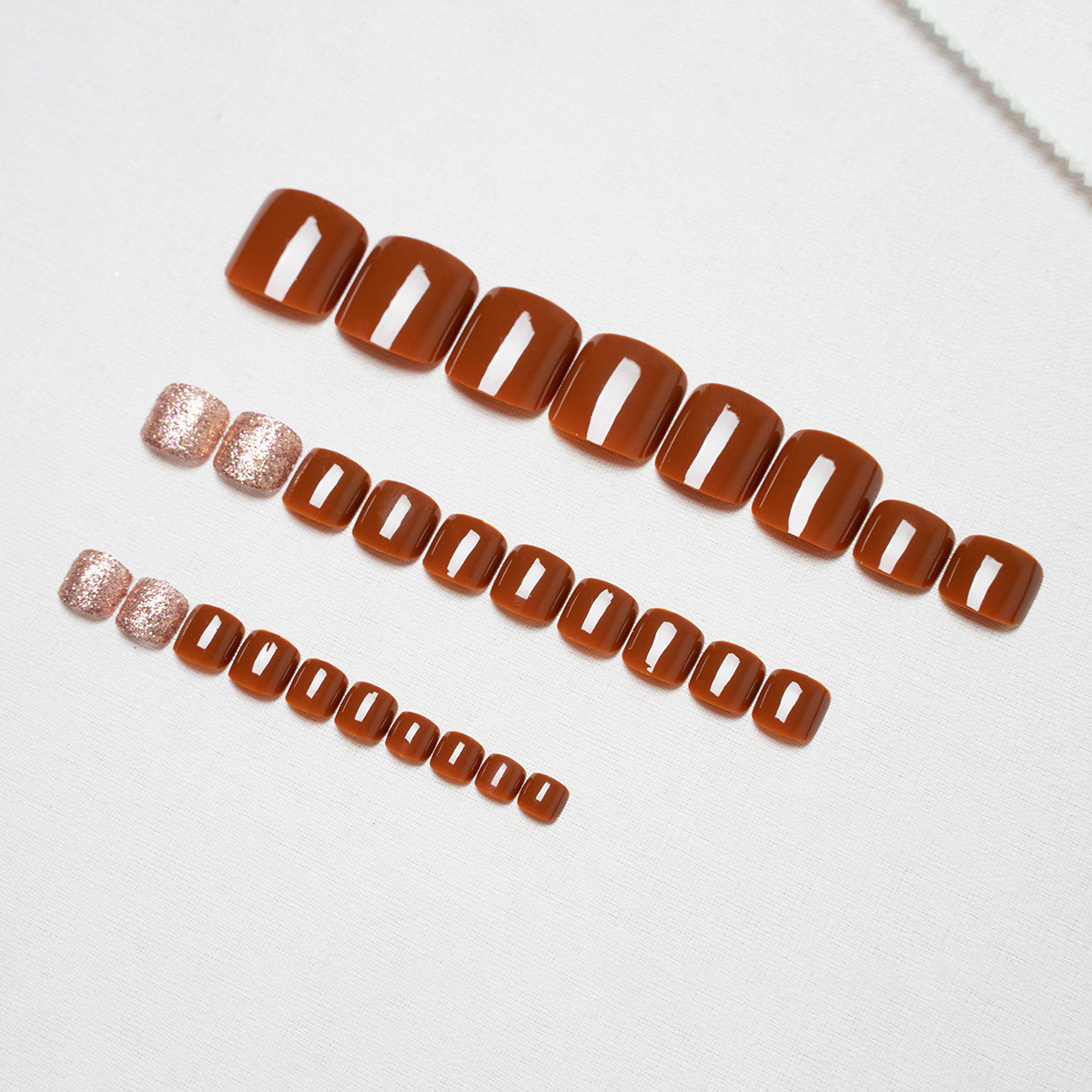 • 17POOL💙 PF09 เล็บเท้า สีส้ม ประกายเงิน เล็บปลอม สำเร็จรูป กันน้ำ กล่อง 24 ชิ้น